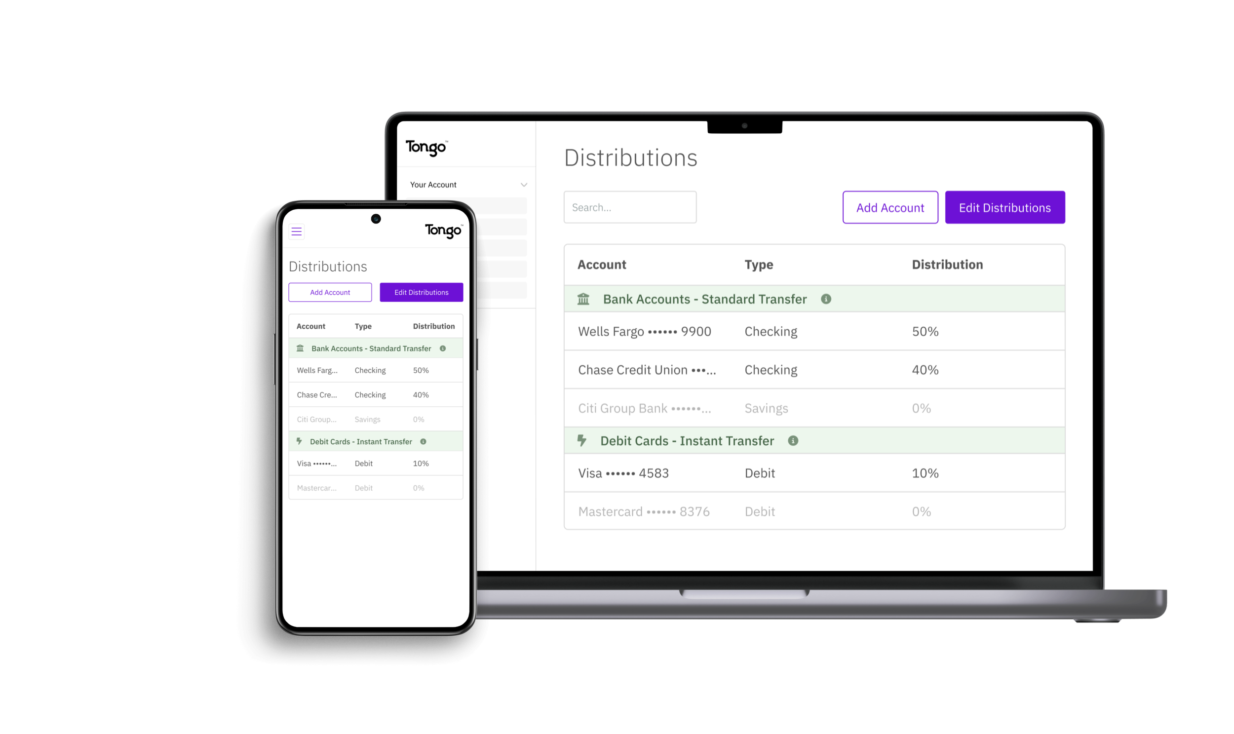 Real estate professionals who get paid with Tongo can configure how each commission gets distributed across connected checking, high-yield tax savings, and investment accounts.